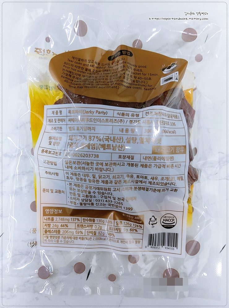 우리 가족이 육포를 먹고 싶다고 할 때에는 샘표에서 나오는 질러 육포를 주로 먹습니다만,
