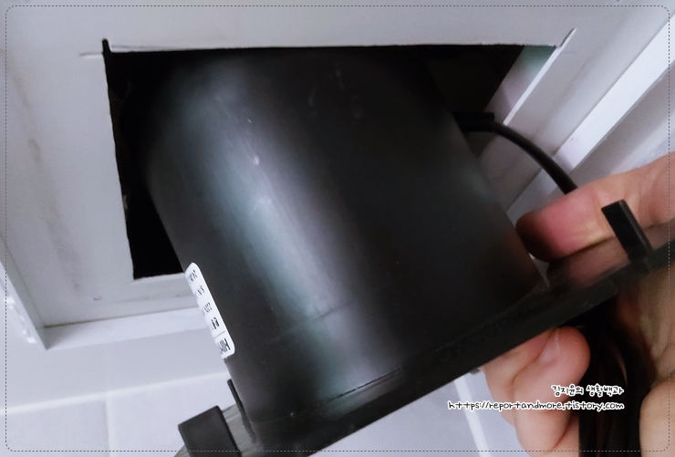 환풍기 뒤쪽에 주름연통(배관파이프)을 잘 넣어 줍니다.