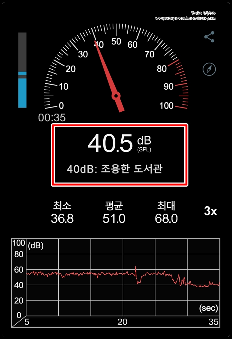조용한 사무실이 50.0 데시벨 정도라고 하니, 아주 작은 소음 정도일 것으로 추측되지만,