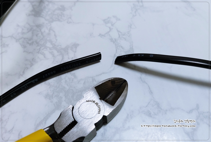 잘 보이시라고, 전원코드 단면을 찍어 보았습니다.