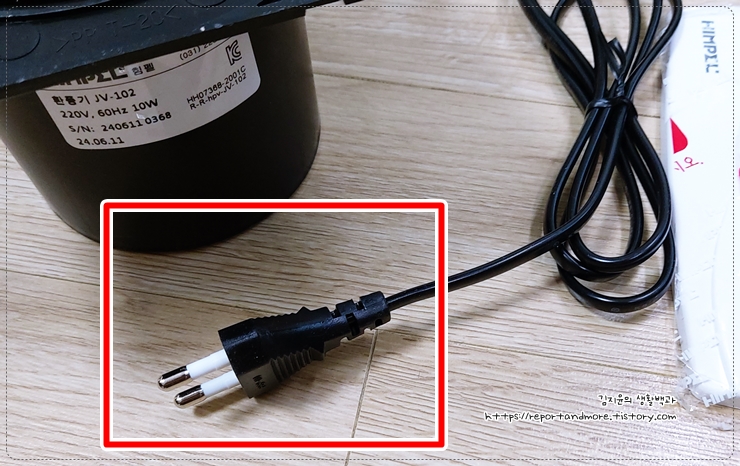 새로 구매한 힘펠 욕실 환풍기에 있던 전원코드를 잘라,