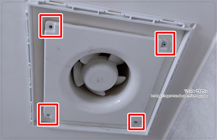 욕실 환풍기의 나사 4개를 제거해 줍니다.