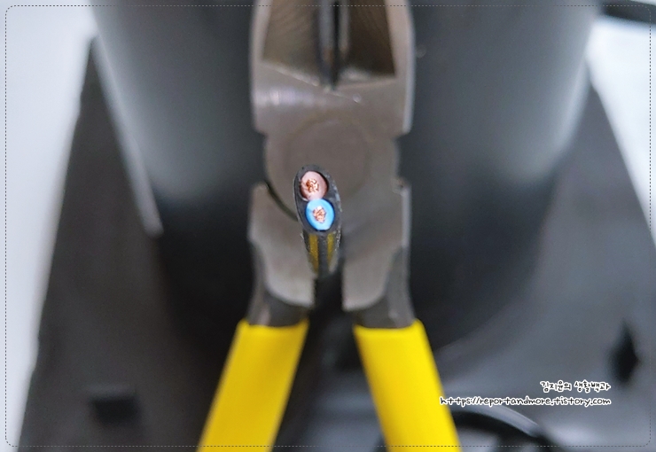 일단 작업의 수월성을 위해, (2번) 전기선 두 가닥을 과감하게 잘라 주었습니다.