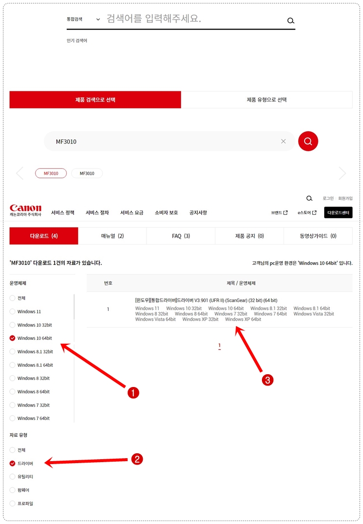 저희 집에 있는 캐논 MF3010 프린터용 드라이버가,