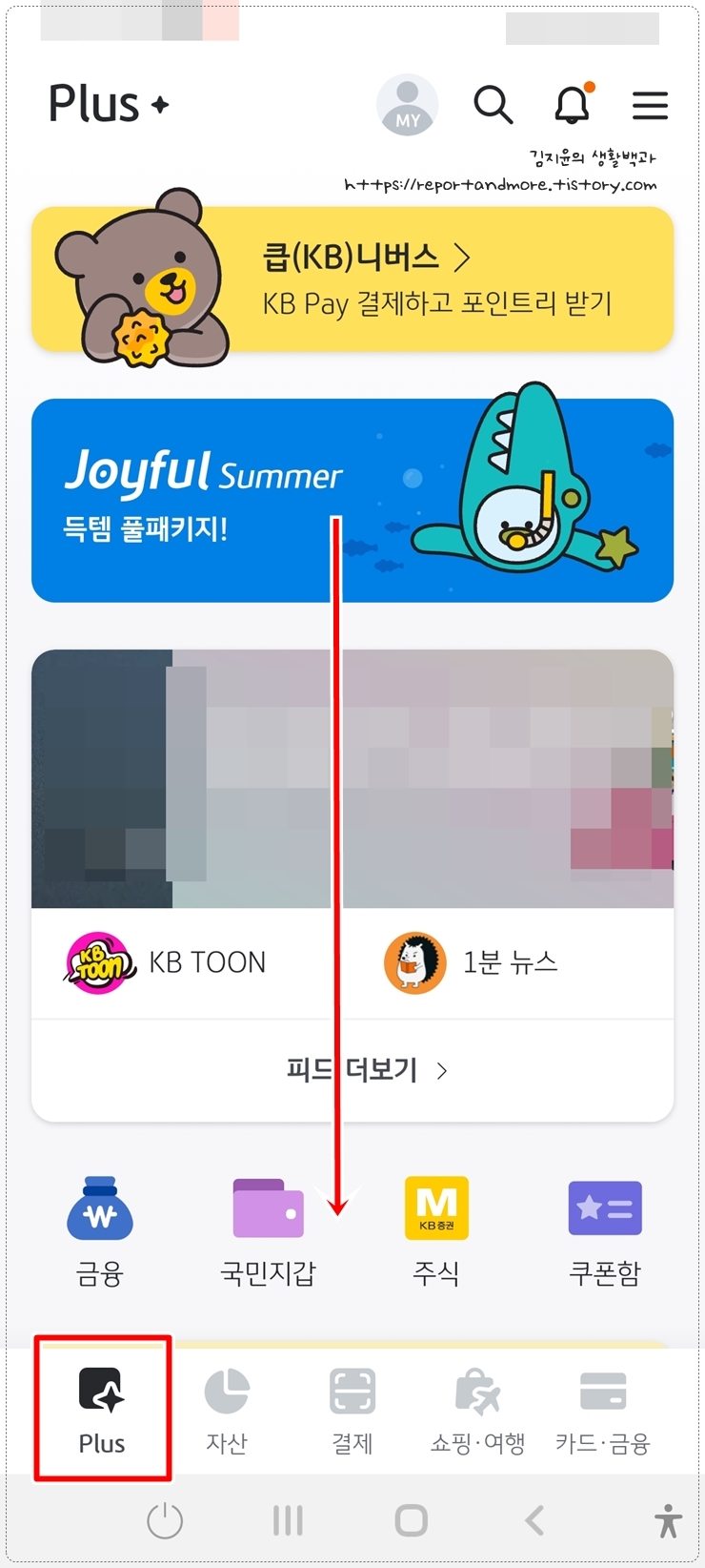 KB Pay의 시작 화면 맨 아래 보시면, [Plus]라는 곳이 있습니다.