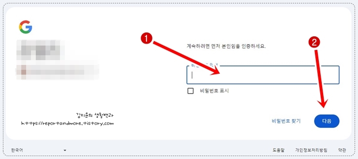 (1) 지금 로그인하고 계시는 [구글 계정의 비밀번호]를 넣고,