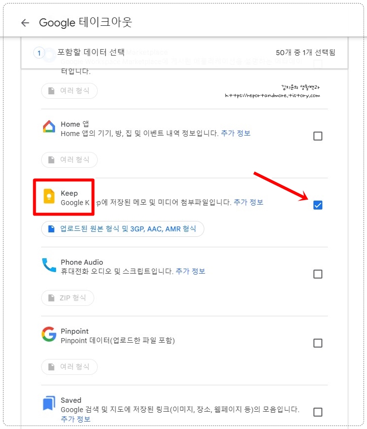 (현재 50가지 구글 활동을 백업할 수 있습니다.)