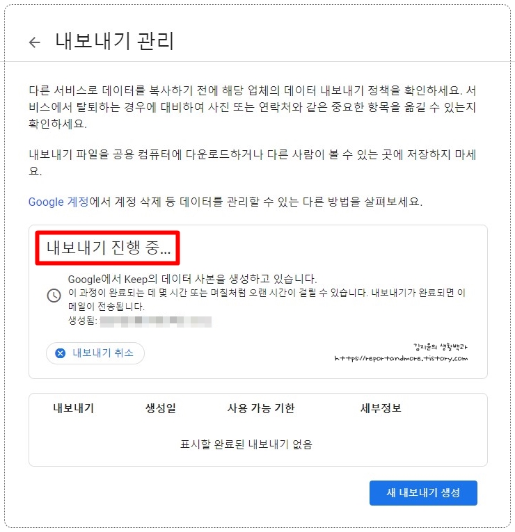 [내보내기 진행 중...]이라는 메시지가 나오는데요,