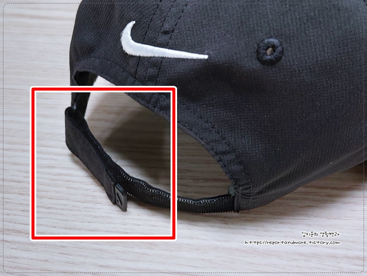 여기 모자 끈조절 부분의 벨크로가 메롱메롱한 상태...