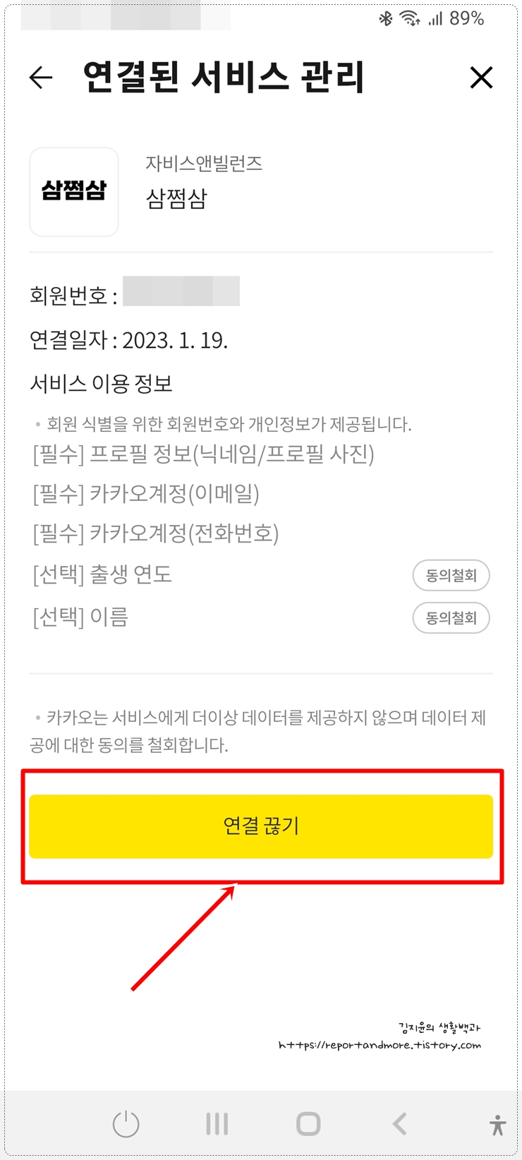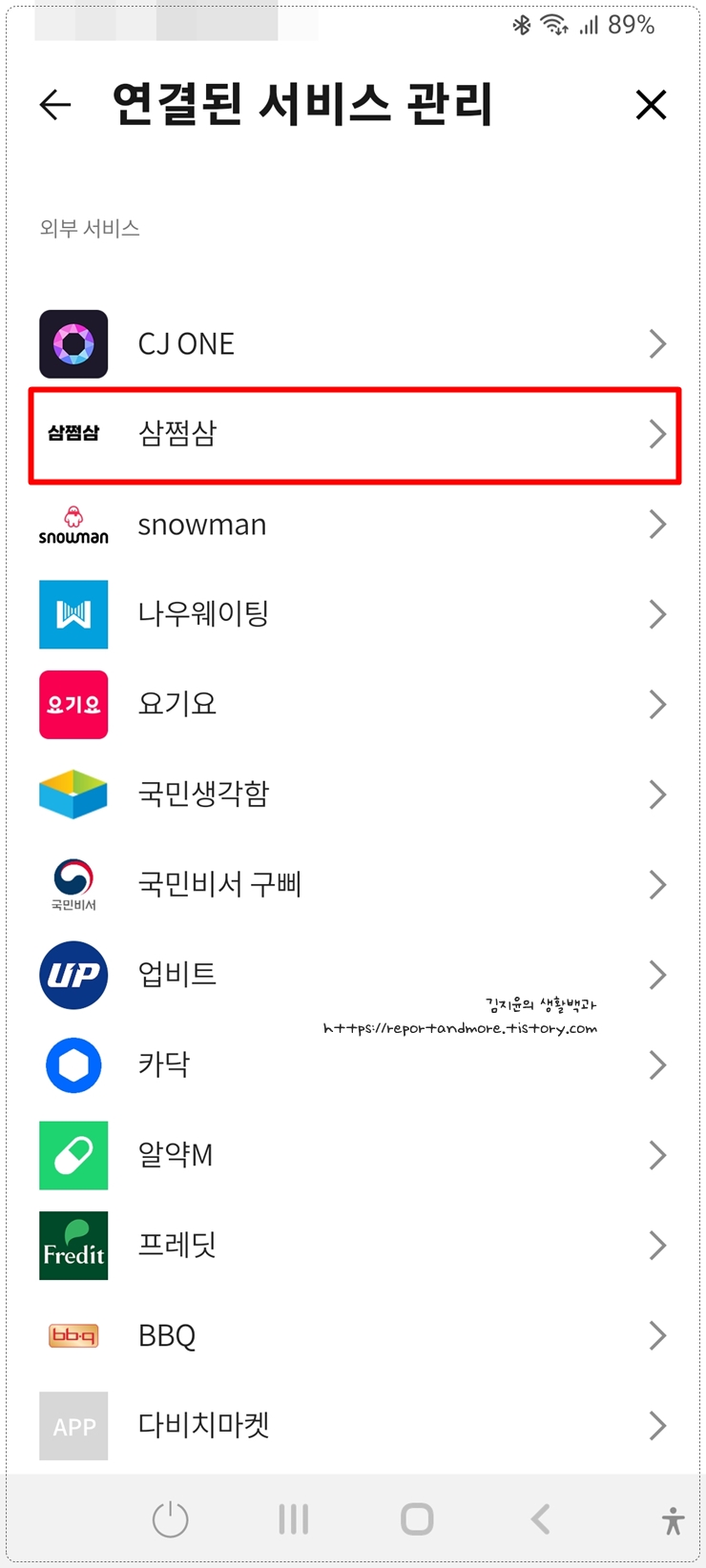 그중에서 제가 사용하지 않는 [삼쩜삼]이라는 어플 연결을 끊어 보겠습니다.