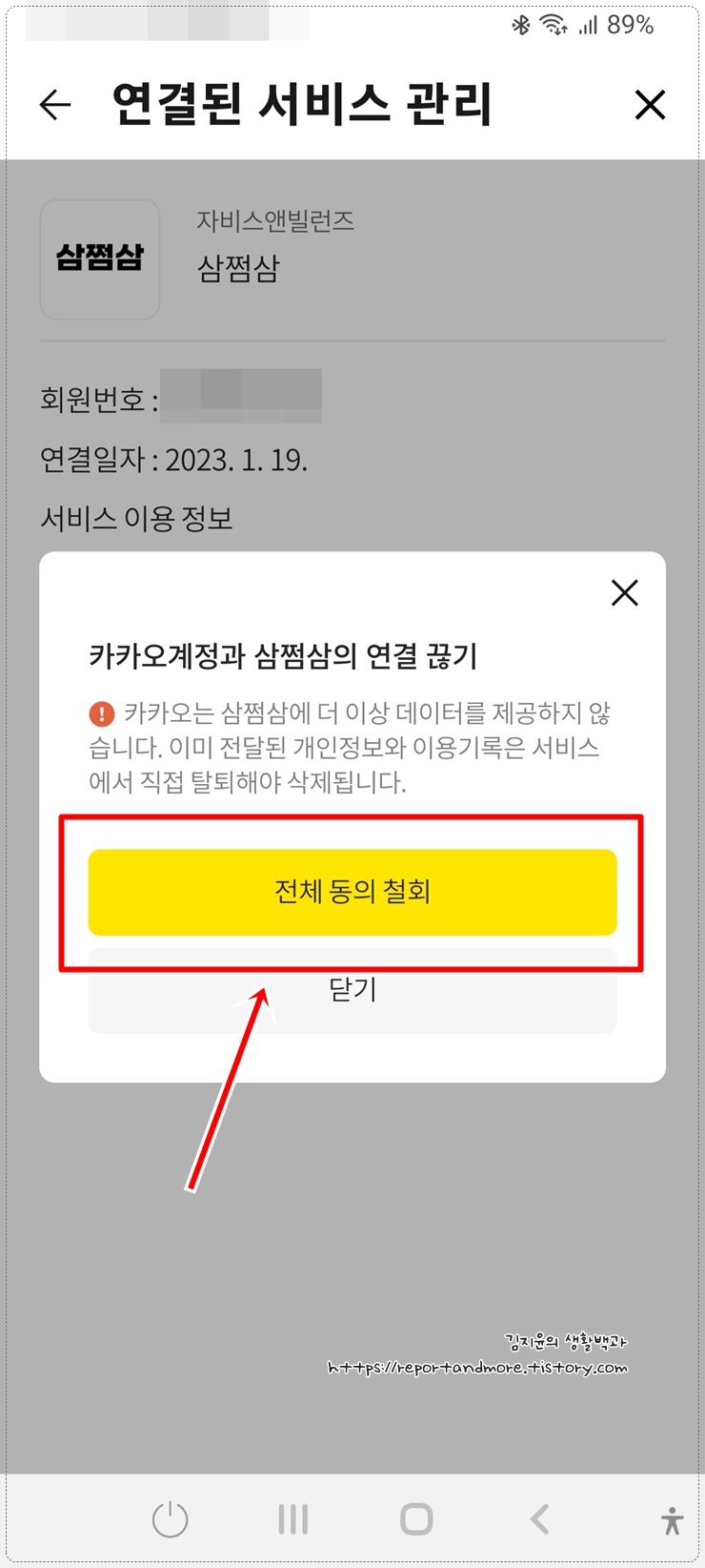 이미 전달된 개인정보와 이용기록은 서비스에서 직접 탈퇴해야 삭제됩니다.]