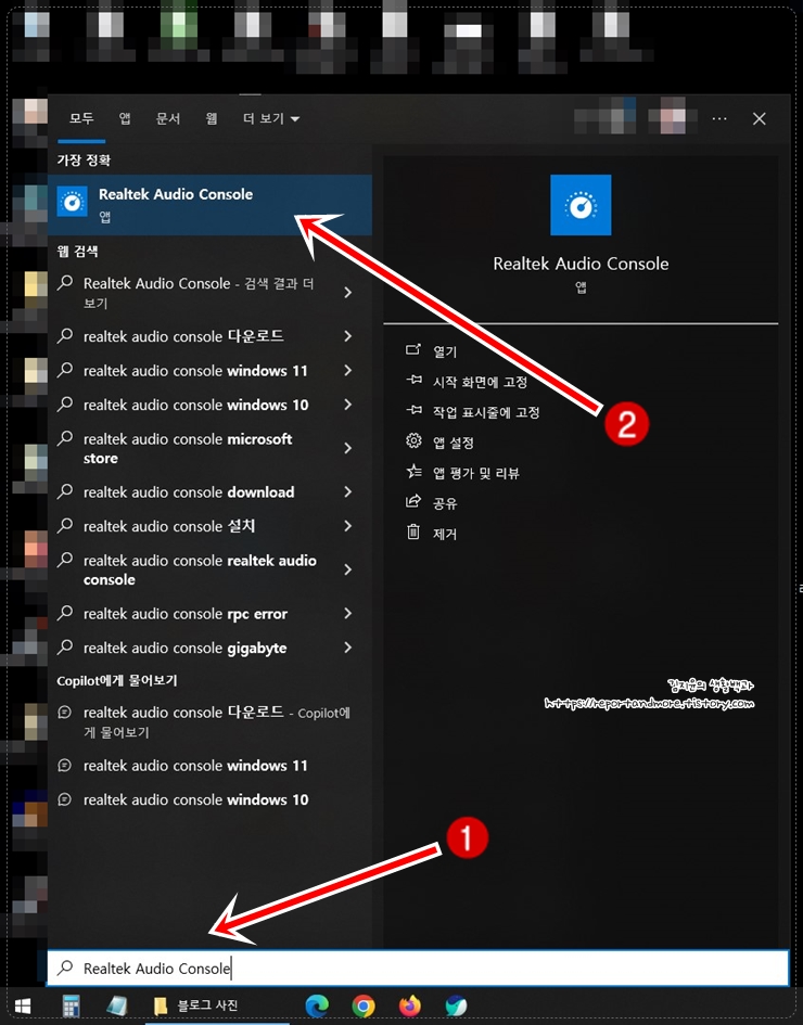 (1) 그러면, 하단에 입력창이 나오는데요, 입력창에 [Realtek Audio Console]이라고 입력하면,
