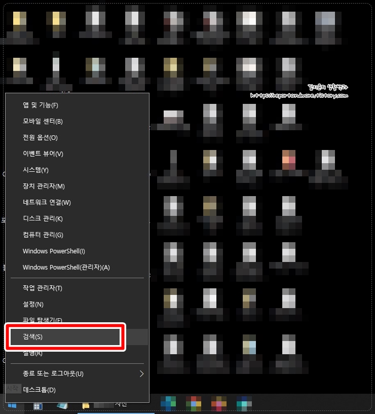 먼저, 윈도우 화면 맨 아래, 왼쪽에 보시면 [흰색 윈도우 창문 아이콘] 이 있습니다.