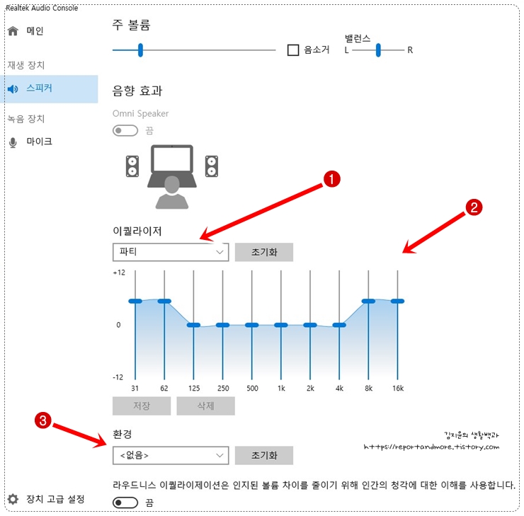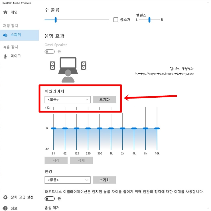 윈도우 OS에 내장되어 있는 이퀄라이저를 이용, 좀 더 나은 소리를 만들어 낼 수는 있습니다.