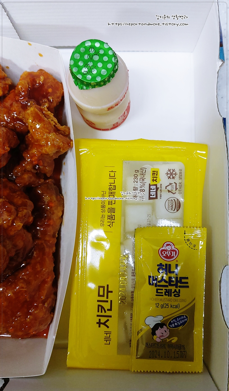 네네치킨의 양념치킨의 경우는 후라이드랑 구성이 조금 다르네요.