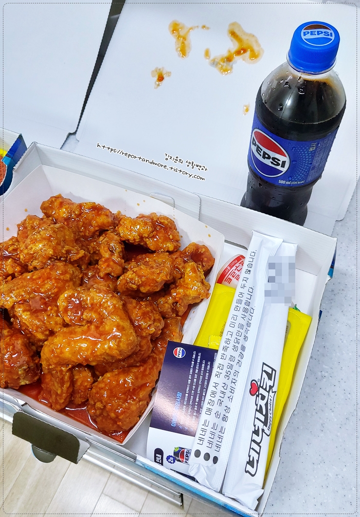 (저희 동네 호식이두마리치킨은 정말... 너무... 많이 소스를 아끼셔서... ^^;)