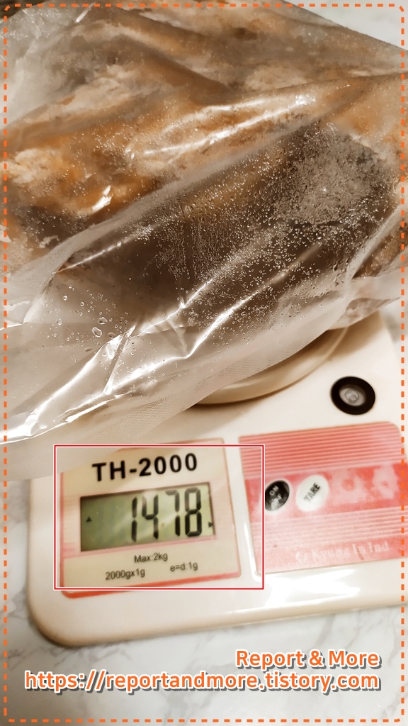 그리고, 이 사진은 1Kg 한팩 중에서 반은 먹고, 남은 반입니다....