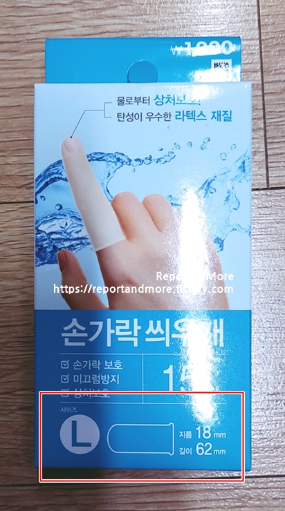 뒷면을 보면, 명칭이 [Aqua Finger Cots]로 되어 있고요,