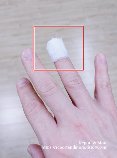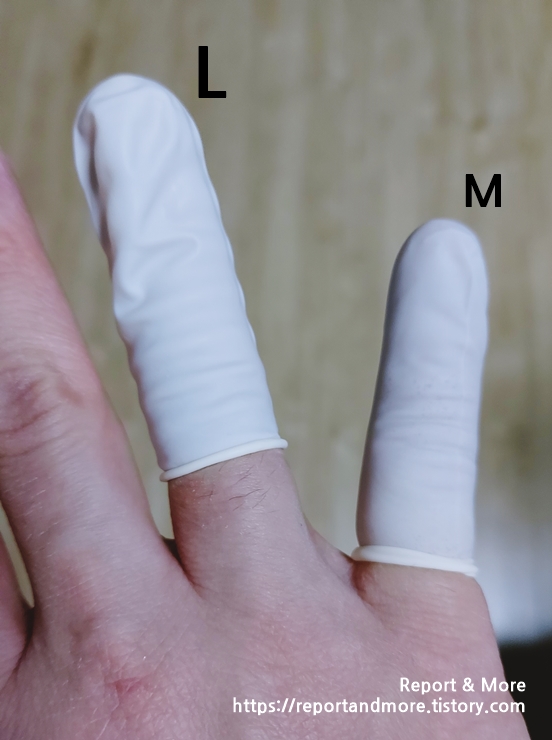 다친 약지손가락에 L 사이즈를 끼워 보았습니다.