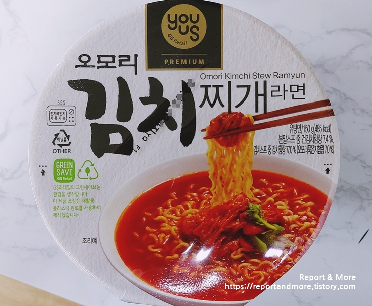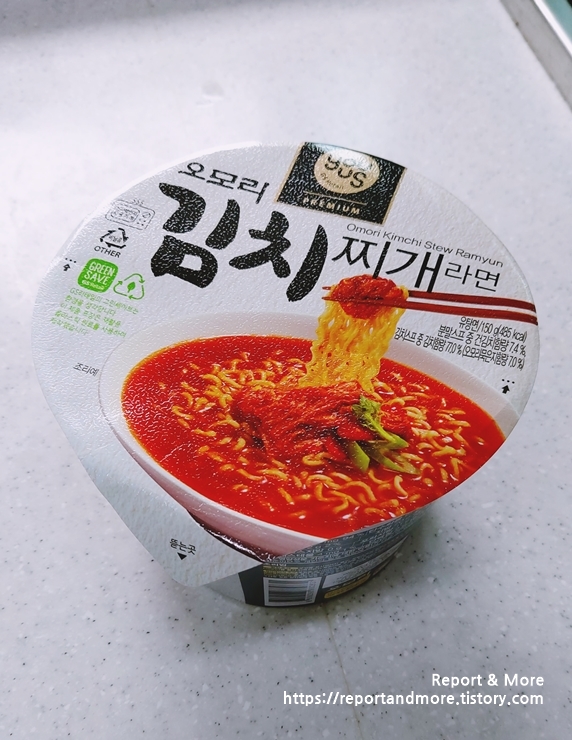'오모리 김치 스프'는 편의점에서 파는 '꼬마 볶은 김치'와 똑같은 맛의 '생 김치'가 들어 있습니다. (건조 X)