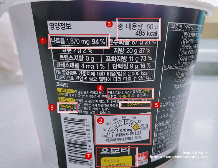 (3) 총중량은 150g이고요, 485kcal입니다. 일반적인 봉지라면 수준이네요.