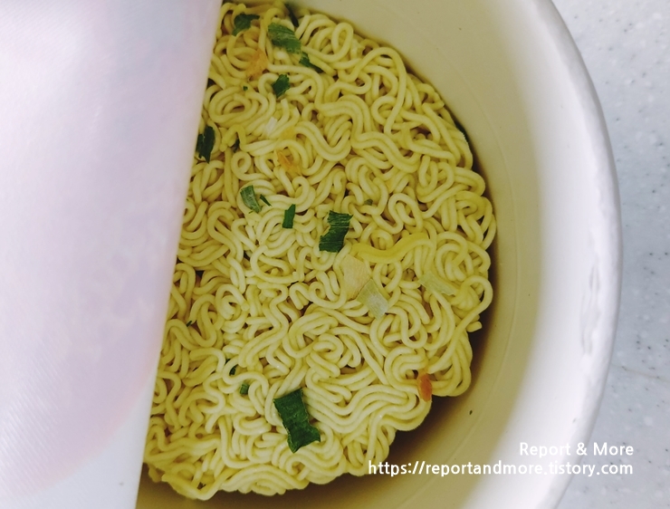 (5) 뜨거운 물을 붓고 전자레인지에 2분 30초(1,000W 기준) 정도 데워주시거나,