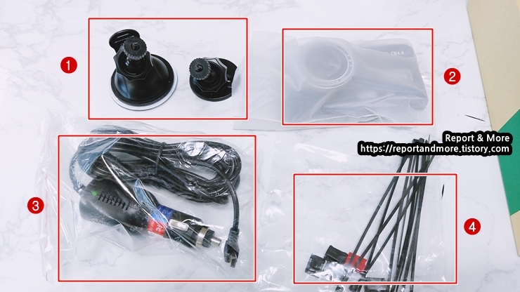 블랙박스를 고정할 수 있는 거치대가 2가지 종류가 들어 있는데요,