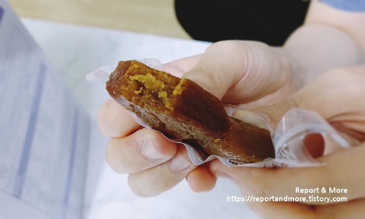 저는 좀 담백한 약과를 좋아하는데, 내용물을 보시면 좀 뭔가 '줄줄~' 흐르고 있는 듯하죠?