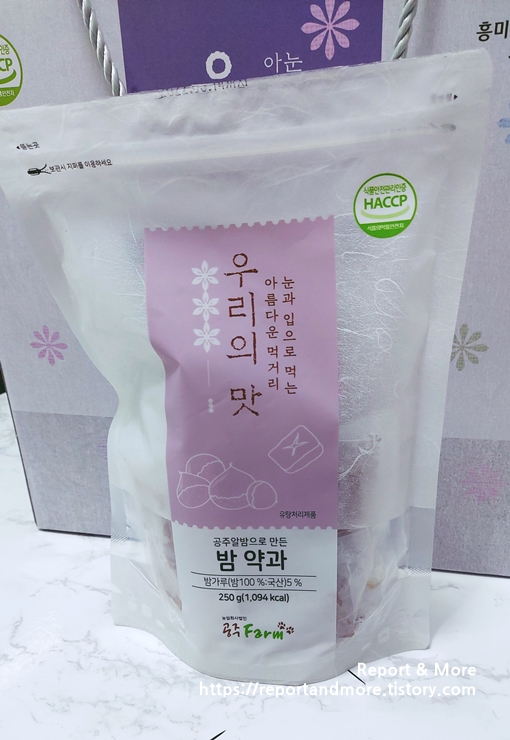 그래서, 아이 고모가 '공주 Farm'에서 나온 '공주알밤 약과'를 선물해 주었습니다.