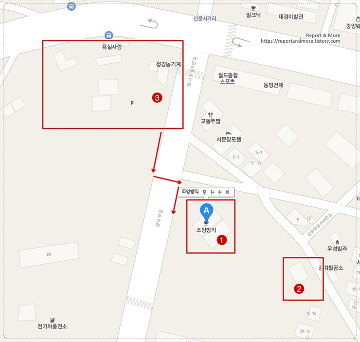(2번)은 조양방직 소유 주차장입니다. 주차 후, 좀 걸으셔야 합니다.