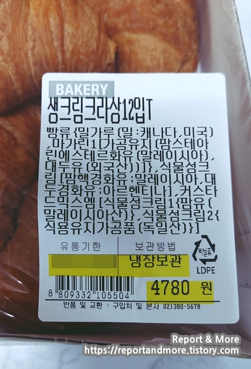 저는 개인적으로 크림이 없는 크루아상을 좋아하지만, 가족들의 의견을 존중해서 이 친구를 사 왔습니다.