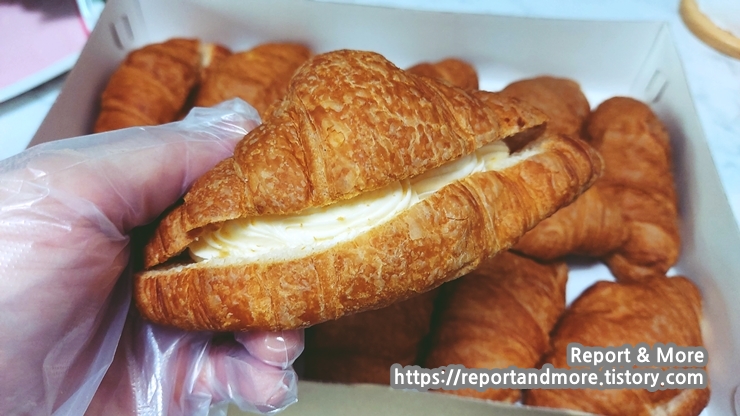 크루아상을 반으로 갈라서, 그 안에 크림을 넣었는데요, 크림은 많이 들어있을까요?